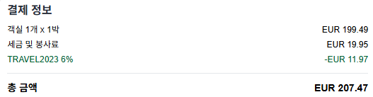 조식이 포함된 가격으로 1박에 EUR 207.47 (24년09월) , 아고다를 통해 예약했다.