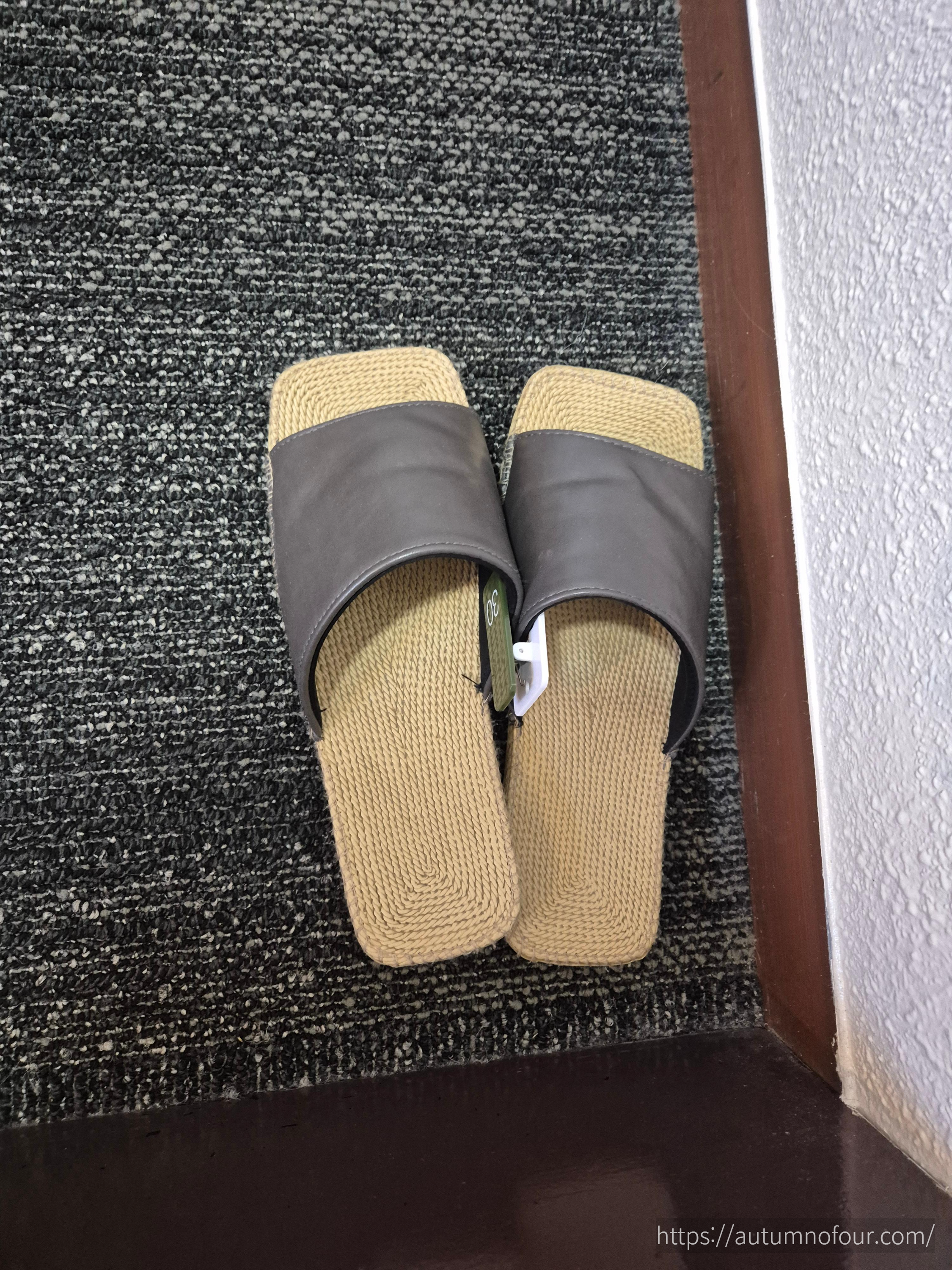 신고 온 슬리퍼를 같이 콕 찝어서 짝을 잃어버리지 않게 하는 용도이다.